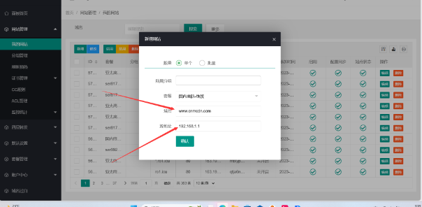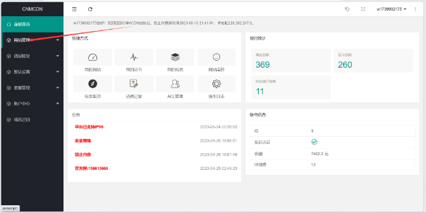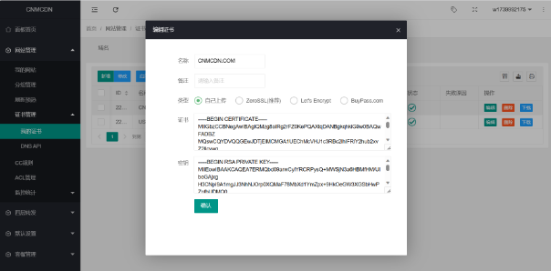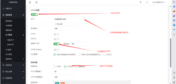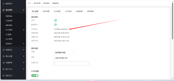 ## 添加网站 CDN添加域名  首先我们打开控制面板,然后点网站管理。 点我的网站然后新增。  填写自己的域名不需要加https或/,中文域名需要转码才能添加 ●所属分组 - 可以为空,可以选择一个或多个分组 ●套餐 - 选择已购买的套餐 ●域名 - 多个域名已空格分隔 ●源地址 - 可以为IP 也可以是域名  等待同步配置好了后生成CNAME值好了后我们复制CNAME解析到CDN上。  以阿里云为例记录类型选择CNAME,记录值填写CDN给你分配的CNAME即可。  [========] ## CDN配置SSL证书配置 SSL获取方式很多,可以自己在CDN上面自己申请也可以自己去第三方平台申请,但是建议不要在宝塔上面申请SSL因为有可能会导致泄露源IP,比如我自己是在腾讯云申请的SSL证书配置如图。 选择自己上传,填写证书跟密钥点击确认  然后去网站管理-我的网站-编辑自己的网站详情如图  其他的看自己要不要开 不懂的就默认好了 不要瞎几把开 ## CDN缓存配置介绍 CDN的缓存配置,是使用Nginx proxy模块,更多的说明请参考[http://nginx.org/en/docs/http/ngx\_http\_proxy\_module.html](http://nginx.org/en/docs/http/ngx_http_proxy_module.html)  ●类型 - 可选后缀名,目录,全路径 选择后缀名时,内容填写如css|js|png,不区分大小,表示缓存后缀为css,js,png的请求,如<http://www.cnmcdn.com/123.css> 选择目录时,内容填写aa|bb|cc,表示缓存如 -10 \tdfid \tddp \tdop \tdlt inline \tdds \tdfvi \tdlf ●选择全路径时,内容填写/123.css,表示只缓存 <http://cnmcdn.com/123.css>的请有效期 - 输入数字,单位可选秒,时,天 ●忽略参数 - 启用时,忽略url的参数,如/123.css与/123.css?a=1,这两个请求只缓存一份,请求时/123.css,/123.css?a=2,/123.css?b=3都是认为已经缓存了,取与/123.css同样的缓存 ●强制缓存 - 当想要缓存动态内容时,或者发现设置了缓存但实际没有生效,可以开启这个 ●不缓存条件 - 设置某一特定的请求不缓存,比如缓存了整个网站除了客户端带指定cookie名为wordpress\_logged\_in的请求,那么可以变量输入$http\_cookie,字符串输入wordpress\_logged\_in。 实例说明缓存wordpress 有一个客户想缓存整个wordpress,除了已经登录的用户,那么可以这样设置。  缓存整个目录,除了一些文件 以下示例是指,缓存整个/foo/目录,但是不缓存目录里面的1.html文件